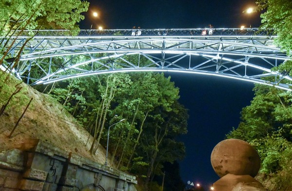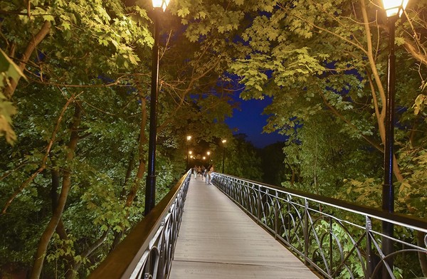 Парковый мост, известный как Мост влюбленных, соединяющий Городской сад и Крещатый парк получил современное художественное освещение.
