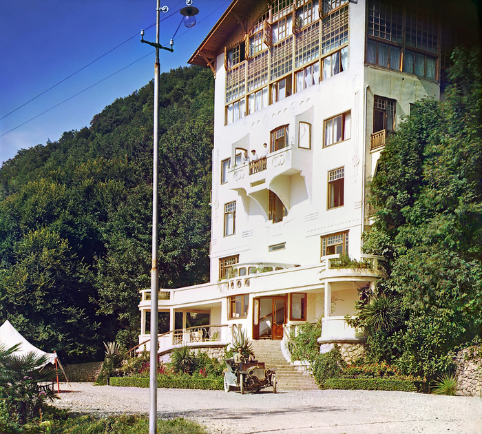 В том же году на юге России, в Гаграх, Прокудин-Горский фотографирует диковину из диковин — автомобиль! Это единственный кадр из более чем 2600, сделанных автором, на котором есть это чудо техники, — хотя, по словам фотографа, во время поездки по Уралу он тоже передвигался на авто.