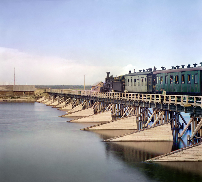 В 1914 году в Россию пришёл главный двигатель технического прогресса — война. Прокудин-Горский не снимал непосредственно боевые действия, но в 1916 году он отправился в большую поездку по железной дороге, спешно проложенной до нового северного порта — Романова‑на‑Мурмане, нынешнего Мурманска. Город был нужен для приёма военных грузов из Англии и Франции в обход морской блокады. Медлить с достройкой дороги было нельзя, поэтому большинство мостов на пути сделали деревянными, как, например, этот, через реку Шую.