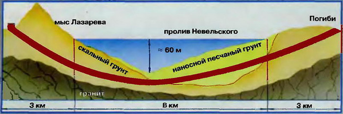 Если смотреть на карту, то проект казался полностью логичным. В проливе Невельского между мысами Лазарева (Хабаровский край) и Погиби (Сахалинская область) остров от континента отделяют лишь чуть более 7 километров воды — расстояние значительное, но вовсе не непреодолимое. Это позволило потревоженным Берией ответственным специалистам предложить сразу три варианта организации «непрерывного железнодорожного движения» на остров и обратно.