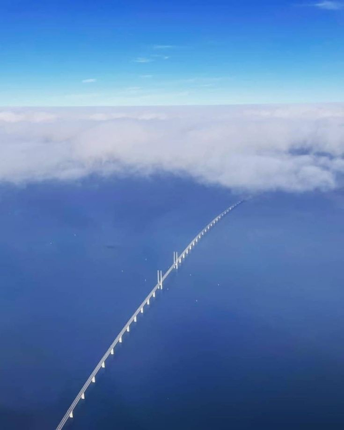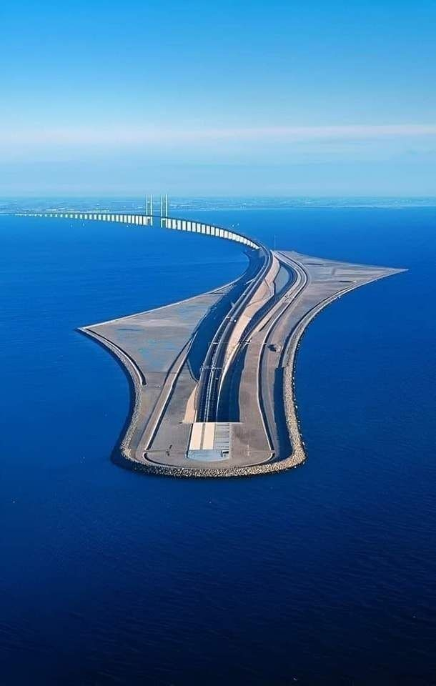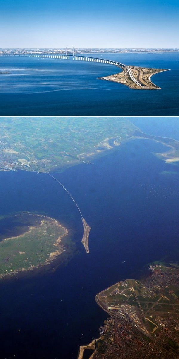 Вообще Эресуннский пролив раньше был озером. Его название переводится как "гравийный пляж". Но затем произошло резкое повышение уровня моря и озеро скрыло, затопив окраины. Так образовался пролив. Спустя тысячи лет решили строить мост. Ниже фотография моста.