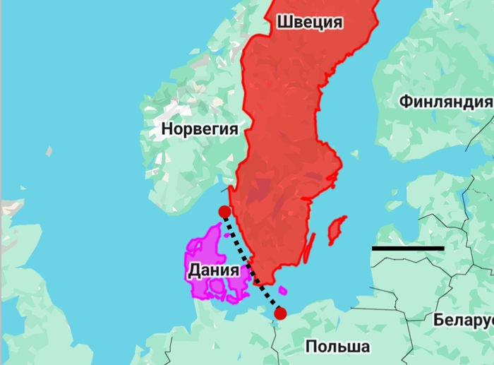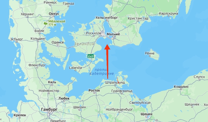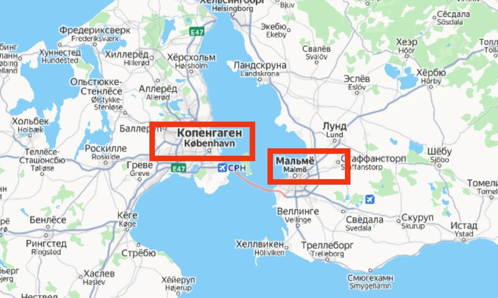 Так вот через Эресунн ещё 25 лет назад проложили мост, по которому теперь можно ездить из датского Копенгагена в шведскую Мальмё.