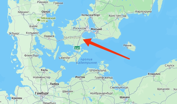 А вот столица и вся основная часть страны находится на втором по величине острове под названием Зеландия, площадью 7000 км², и как раз в этом проливе.