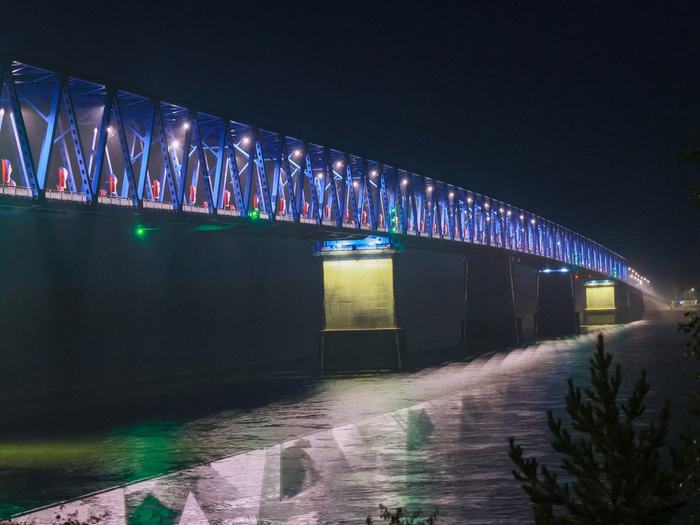 В настоящий момент подрядчик приступил к укладке нижнего слоя покрытия асфальтобетона мостового полотна металлических пролетных строений. Общая площадь укладки асфальтобетонного покрытия на мосту составит более 11 тысяч кв. метров.