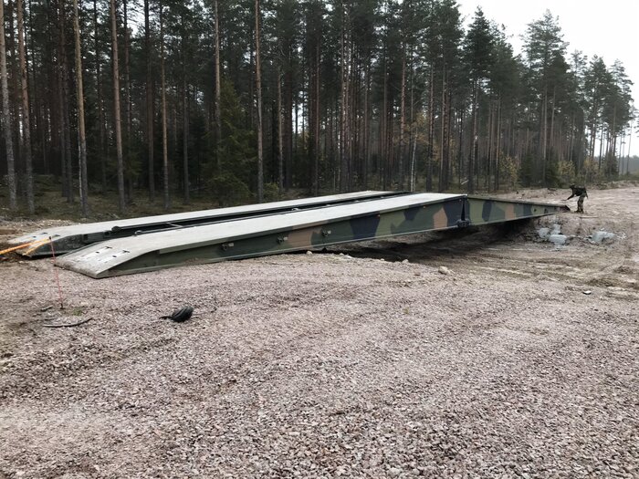 Разумеется, не забыта и практика использования сборно-разборных мостов из готовых элементов. Например, МАРМ возводится буквально за несколько часов на длину более 100 м. Грузоподъемность 50 т позволяет переправлять по нему танки. Такой мост строится в полтора раза быстрее, чем деревянный, и не требует поиска материалов, так как все детали присутствуют в комплекте моста. Его также можно при необходимости разобрать и перевезти в другое место. Существуют и более крупные мосты, САРМ и БАРМ. Более тяжелые мосты собираются дольше, но имеют большую длину и возможность собрать двупутный мост большей грузоподъемности.