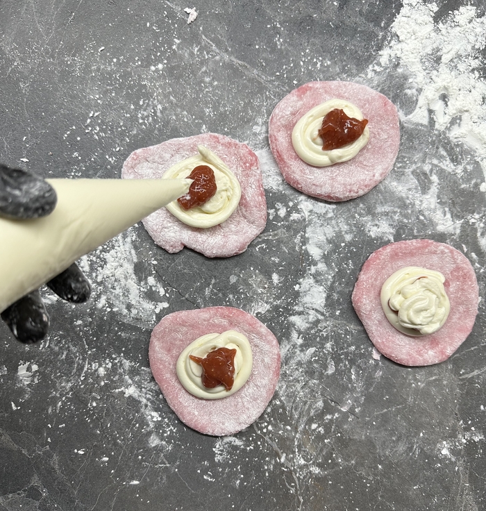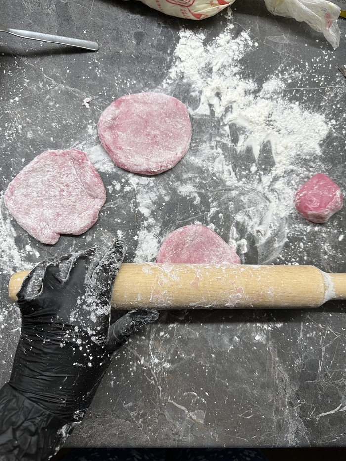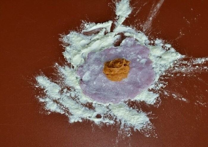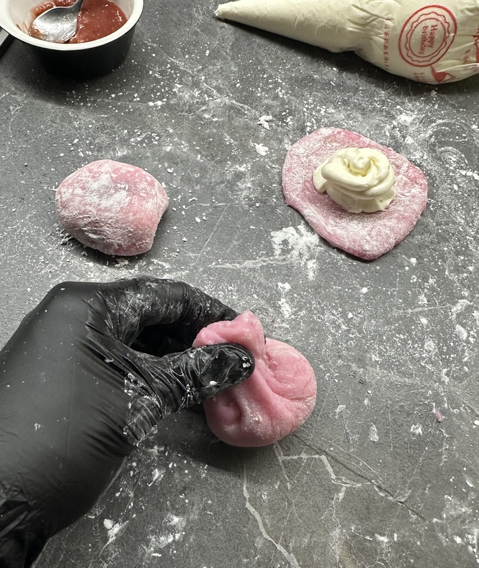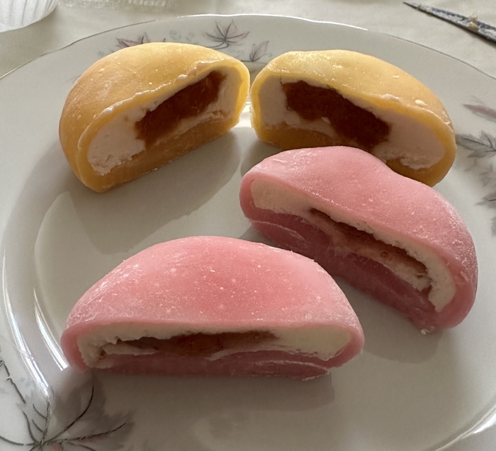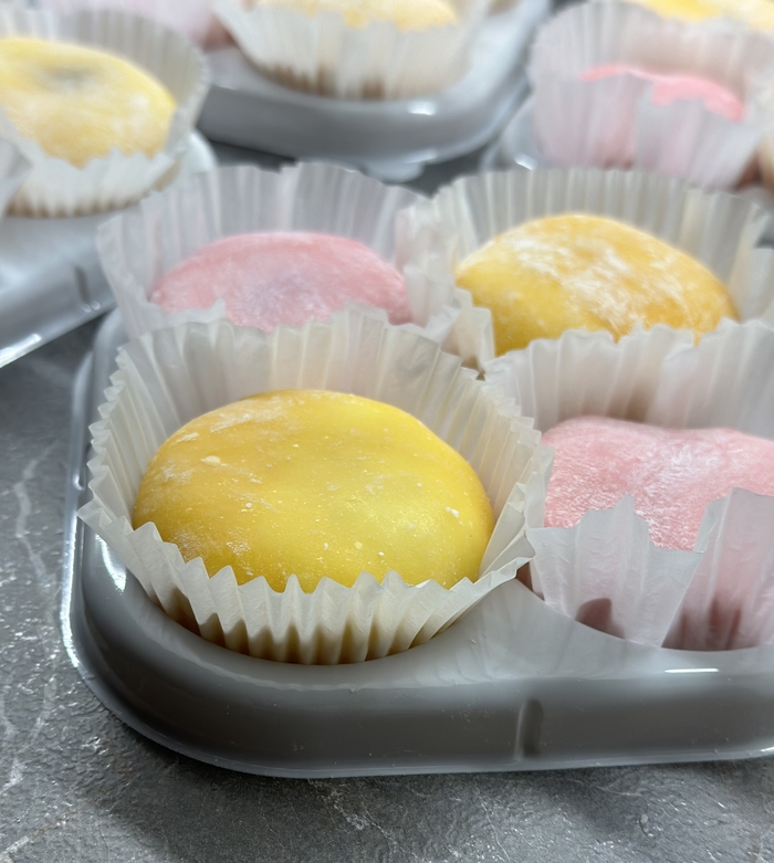 Мягкая и приятная оболочка из рисовой муки, на разрезе видно как завлекающе лакомство выглядит и будоражит вкусовые сосочки, но.. Вкуса почти нет, манго не чувствуется совершенно, какие-то отголоски сладости имеются, но по факту приятно есть только из-за мягкой и слегка резиновой структуры. Информация что моти не содержат сахар, немного разъяснила ситуацию, но легче не стало) Прикольно по структуре, но совершенно безвкусно.