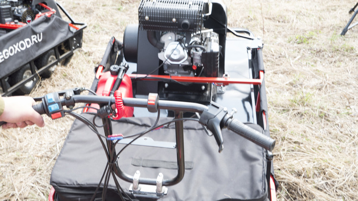 В случае нашего конкретного заказа тянуть за собой ничего не нужно, соответственно фаркоп не нужен. Но возникает необходимость искусственно ограничить скорость до 5 км/ч, чтобы пользователь поспевал идти за мотособакой.