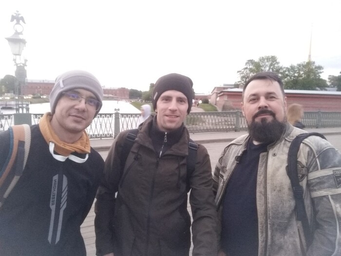 Доехали до Питера к вечеру, заселились в апартаменты большого дома на окраине, оставили мотоциклы и гулять! В Санкт-Петербурге живёт мой хороший друг Алексей, с которым я давно не виделся и, конечно, очень хотел исправить это сейчас. Помимо того, что Алексей в своё время «подсадил» меня на старые BMW и помог мне взять тот мотоцикл на котором я езжу уже 4-й год, он ещё увлекается историей в т. ч. военной. Поэтому вечером у нас был свой гид по улицам и красотам города, за что ему, конечно, отдельное спасибо.