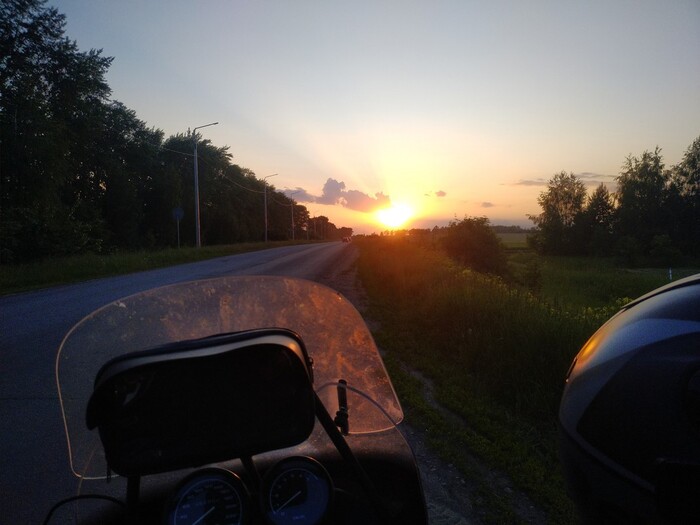 Сборы, укладка вещей, завожу своего старичка гуся и вперёд, навстречу приключениям. Надо сказать, что крайне редко я выезжаю вечером куда-то. Обычно с утра пораньше или днём. Поэтому даже знакомая дорога выглядит несколько иначе в закатных пейзажах и вечерних сумерках.