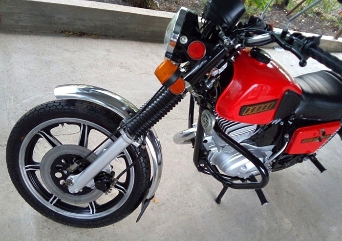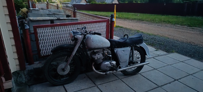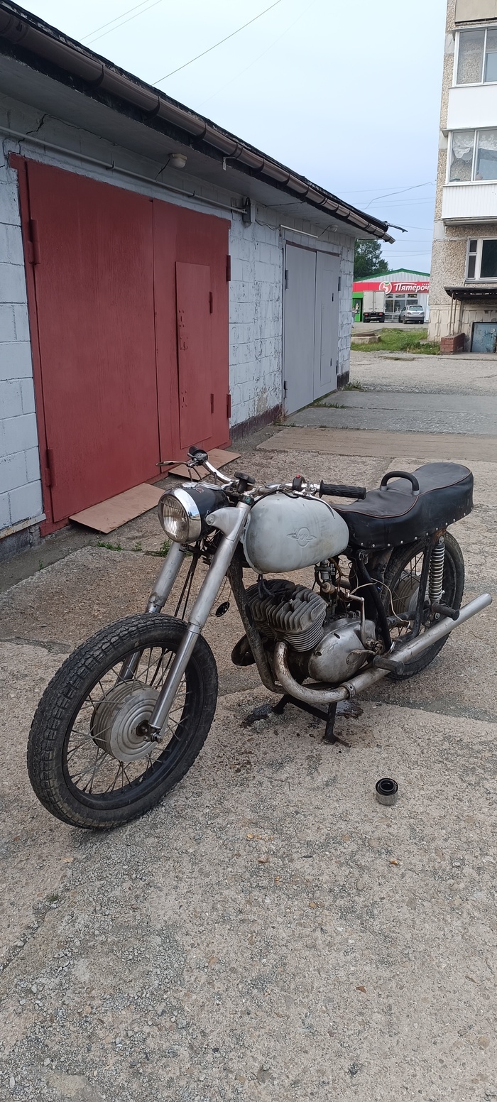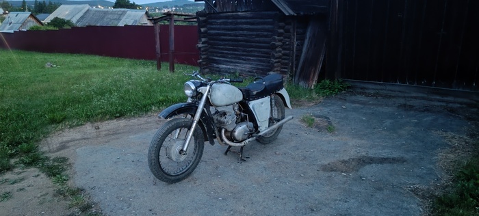 От него шёл необычный запах чего - то грандиозного и утерянного . Вид у него был очень аутентичный, мне такой дизайн очень понравился. Прокулупавшись с ним один вечер в гараже, я собрал из чего есть его внешний вид, поставил аккумулятор и доехал с посёлка до деревни. Так как никаких инструментов для настройки зажигания у меня не было, пришлось ехать на одном цилиндре. А далее, уже в деревне, все было настроено, мотоцикл начал летать как ракета, но а дальнейшие проблемы и продолжение истории будет в следующем посте!