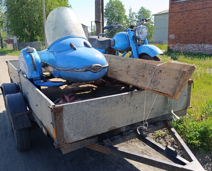 В городе нашел коляску, довольно неплохую, как показалось (особенно учитывая то, что в ближайшей округе это был единственный вариант). Коляска привезена, и вот она уже на мотоцикле: