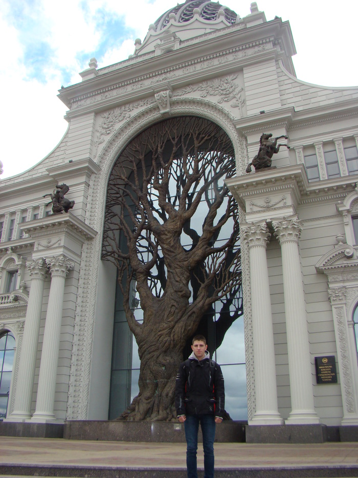 Уже за пределами Кремля, но совсем рядом находится Дворец земледельцев (55.800432, 49.111934) – современное, массивное здание с колоннами и очень красивым бронзовым деревом в центре.