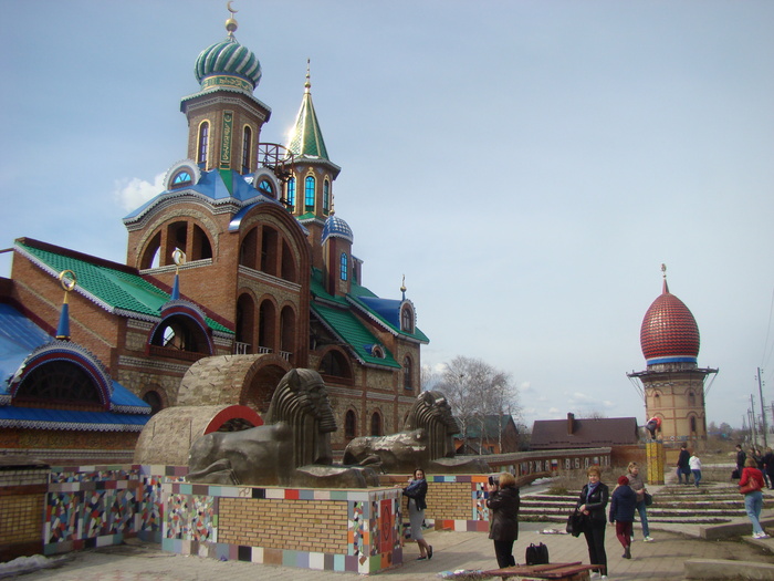 Храм всех религий (55.800570, 48.974720) творение архитектора Ильдара Ханова. В строении сочетаются элементы всех основных мировых религий. Храм всех религий находится в поселке Старое Аракчино в 9,5 км от центра Казани. Но на праздниках там слишком народа. Увы, но никуда от этого не денешься. На тот момент храм активно восстанавливался и реставрировался. Наверное, сейчас он уже в полном порядке.