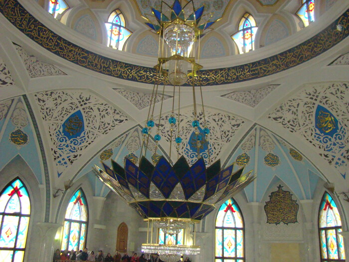 Самый выделяющийся объект на территории Кремля – мечеть Кул-Шариф (на татарском Кол Шәриф мәчете) (55.798382, 49.105114). Внутри и снаружи мечеть впечатляет своей формой и убранством. В ней можно довольно дёшево закупиться разными сувенирами. Мы привезли оттуда замечательную пиалу, которая теперь украшает наш стол.