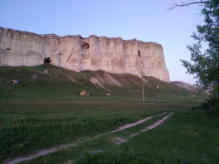Ну что ж, поел на автобусной остановке и повернул назад в сторону Симферополя. Погода резко изменилась, как будто решила утешить меня за геройскую борьбу с ветром и стихией. Под вечер так вообще ясное небо и штиль, а позже и луна составляли мне компанию рядом с Белой скалой. Место под палатку примерно здесь 45.105303, 34.617253. Виды просто фантастика.