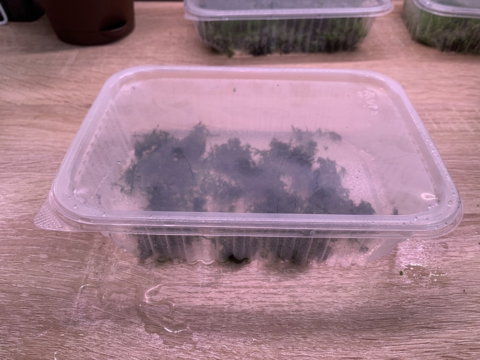 3. Аккуратно укладываем мох по всей поверхности контейнера. Желательно, чтобы он был в один слой, так быстрее будет прорастать