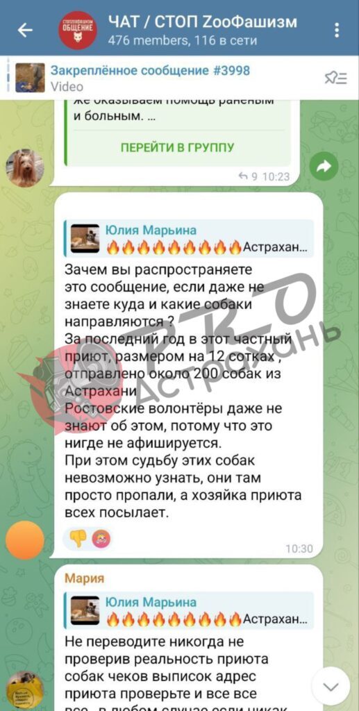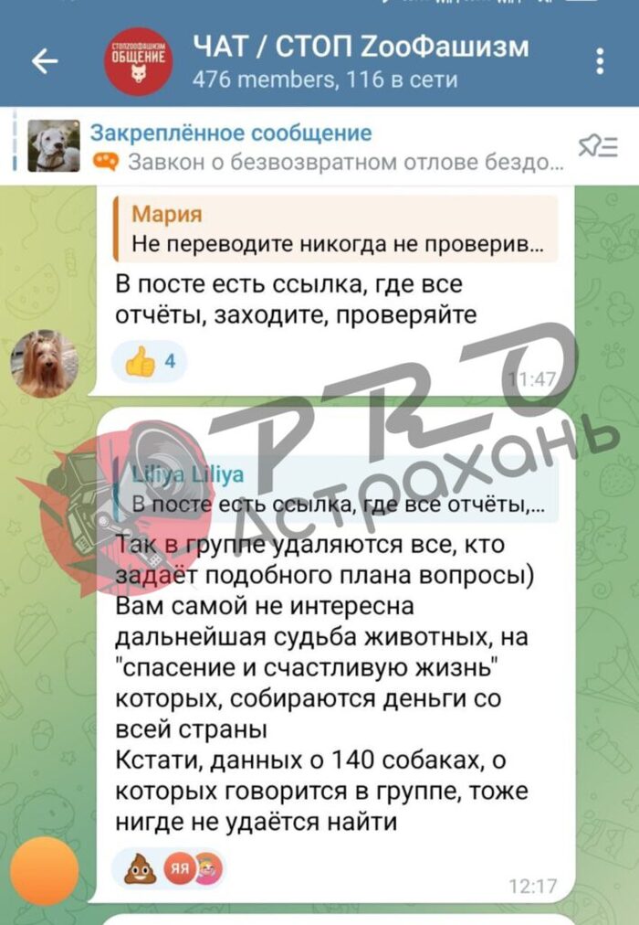 Через два дня мне пришло гневное сообщение с посылом: «Тебе сказали сидеть тихо, а ты наделала шуму. Тебе никто не поверит. Мы вывернем в свою сторону. Удачи в поисках» и удалили сразу после прочтения. Ни Ислам, ни его помощники на связь больше не выходят. Обвиняют меня в том, что я якобы устроила скандал и теперь мне точно пса не отдадут (хотя никаких скандалов не было).