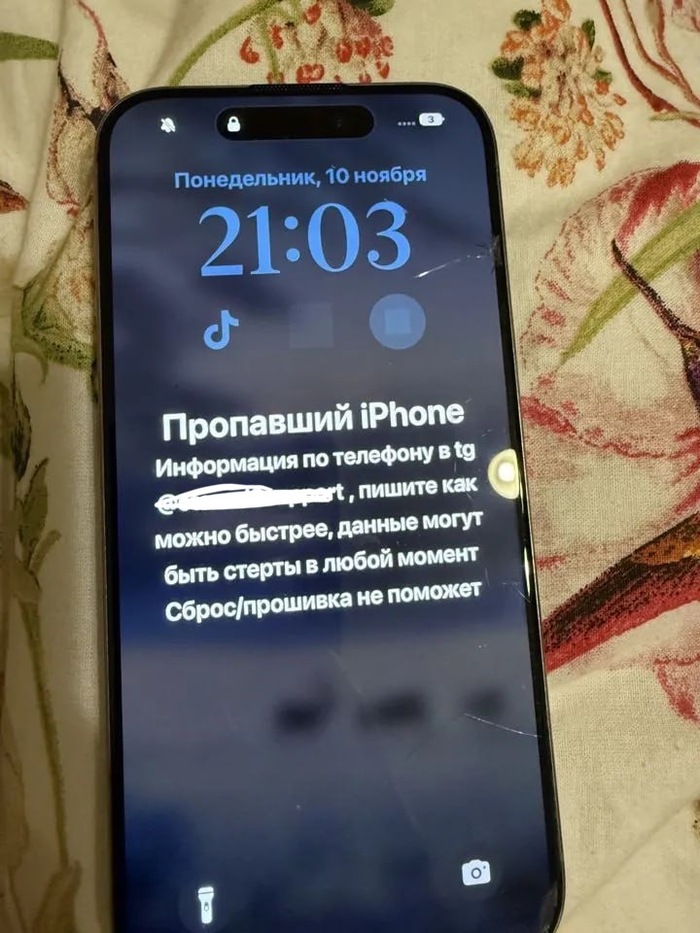 Ваше устройство в режиме утери / кражи, но данные все еще на устройстве, сохраните контактные данные мошенника и переписку, она пригодится при разблокировке.