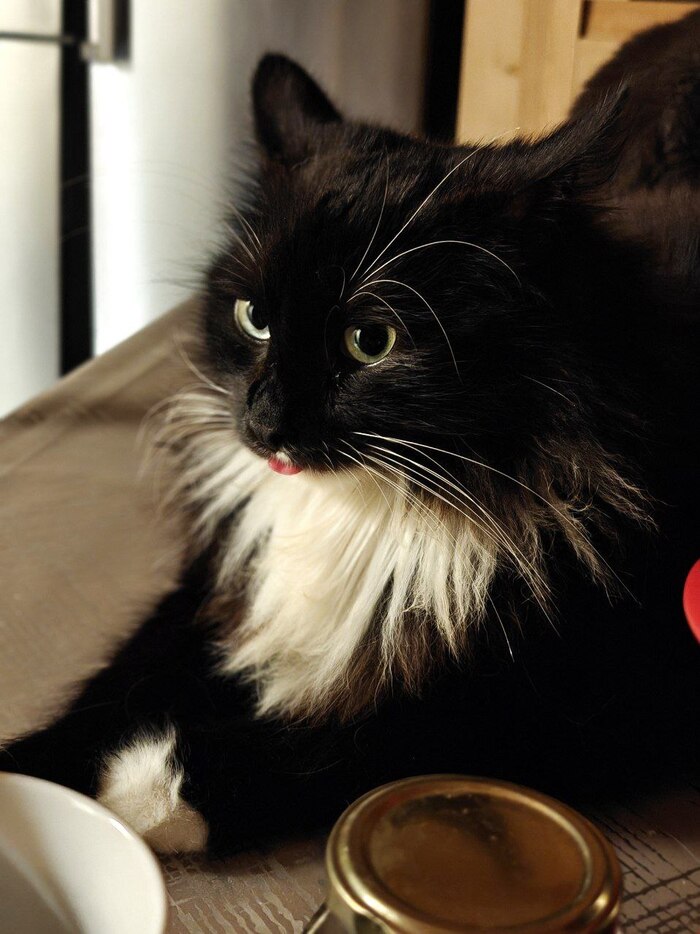 Сидела я однажды и думала "хочу черного кота". И буквально через пару лет вселенная мне подкидывает именно черного, именно кота. Котище. Котяру. Просто под ноги. Бери, ты ж просила. Хоть я и отпиралась, но взять пришлось. И всем он хорош (почти): и ходит в лоток, и жрет чо дали, и блюет не на кровать, и послушный. Мечта, а не кот!