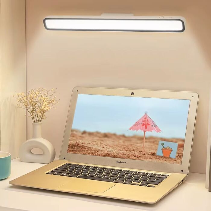Для тех, кто предпочитает работать с ноутбуком, пространство около него можно осветить с помощью аккумуляторной лампы, которую можно зафиксировать, например, на ближайшей стене или полке над рабочим местом. Форма магнитного крепления и лампы обеспечивают возможность регулировки угла наклона в пределах 88 градусов, а аккумулятор емкостью 2000мАч обеспечивает длительное время работы на одном заряде (до 20 часов зависит от выбранного режима). Бесступенчатая регулировка яркости, цветовая температура меняется в значениях 3000K, 4500K или 6000K. Отличный вариант для автономной подсветки не только рабочего места, но и шкафов других затемненных пространств.