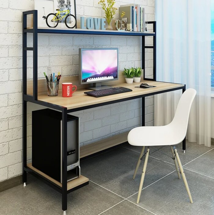Наличие подставок для ПК, подкатных тумб и полок — на ваше усмотрение. Но нужно помнить, что на рабочем столе не должно быть никаких лишних вещей. Всё, что не используется в текущий момент, должно быть убрано из рабочей зоны, чтобы было больше пространства для работы.