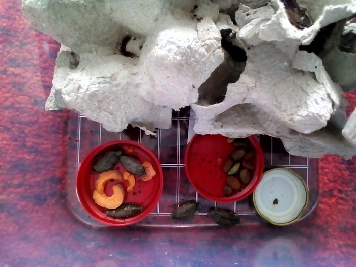 Что касаемо места содержания - это может быть любая подходящая по размеру ёмкость. Также в неё нужно поставить картонные яичные лотки в несколько секций, которые послужат тараканам укрытием.