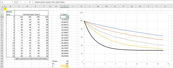 Поздравляю! Вы построили тепловую модель остывания воды!
