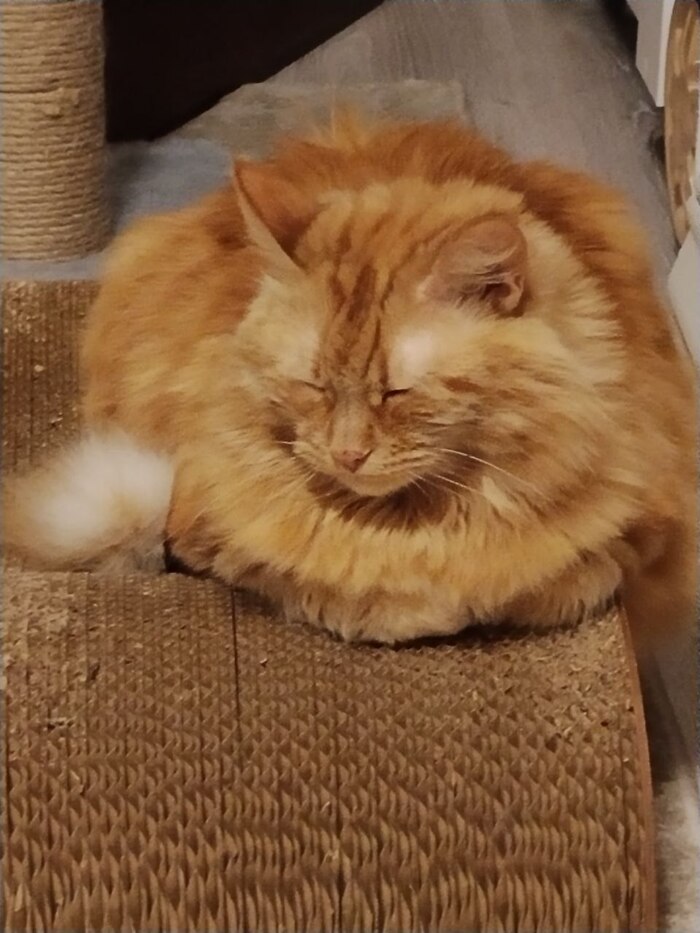 Делая отступление скажу, что этот товарищ очень любит лежать, спать в ногах. Просто кошмар, учитывая, что линолем дома тоже рыжий и его иной раз его просто не видно.