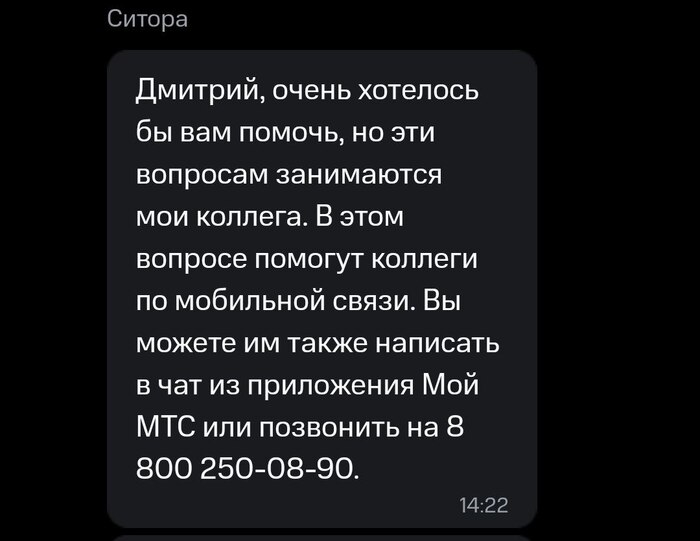 Времена идут, а МТС не меняется. Являюсь их клиентом уже 12 лет, терпел различные изменения и вот, дотерпелся. В чем суть: несколько дней назад заметил, что внезапно перестал работать интернет на телефоне, а точнее начал работать практически на нулевой скорости. Поначалу связывал это с уже ставшими привычными "птичками" и предупреждениями об опасности, так как оставшийся пакет ГБ не давал поводов грешить на него. На второй день пришлось забить тревогу и обратиться в МТС. Мало того, что у них отсутствует чат в приложении (либо я подслеповат и не смог его найти), так и дозвониться до оператора оказалось той ещё задачей. Сотрудник зарегистрировал заявку для проверки возможных проблем по адресу (хотя я сообщил, что она наблюдается абсолютно по всему городу) и рекомендовала ожидать, что я и сделал. Стоит уточнить, что до этого я самостоятельно дважды кидал схожие заявки о проблеме через приложение и мне отвечали, что проблема в закончившемся трафике, хотя это не так.