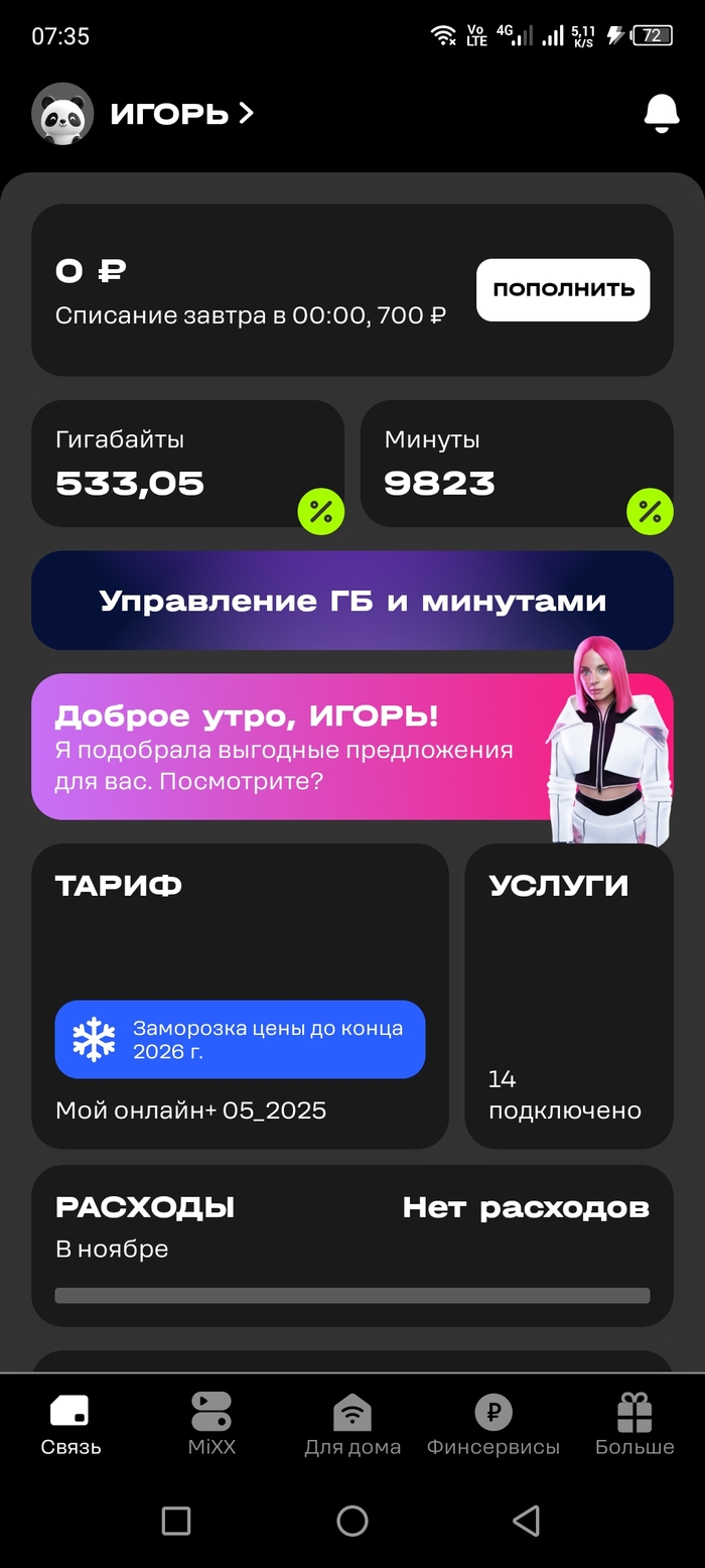 Собственно. Что в приложении "Мой МТС", что в лк на сайте нет пункта "Чат", только звонки тупому, как пробка, боту и прослушивание музыки удержания. Но ладно, это я более-менее победил, прописав руками DNS'ы Яндекса. C "Владлинком" такого не имел никогда от слова совсем, всё работало из коробки. Да и их "Пирс", собственно единственная причина, по которой сидел на них, хоть и работал в последнее время из рук вон отвратительно, но этому недоразумению, под названием "KION" даст 300 очков форы по удобству. Единственное что у МТСа лучше - позволяет ставить приложения с Google Play. С мобильным интернетом тоже не всё слава б-гу, периодически жёстко не хотел работать с VK Video, а VK Музыка работала без сбоев... Так вот, собственно, переходим к теме моего собственно поста - уходя парни, подключавшие интернеты сказали - киньте себе в ЛК денег 1100р или что-то типа того, что я и сделал. Сегодня мне перенесли номер с Билайна в МТС, заранее предупредив, что будут "небольшие технические неудобства"... И да, нихрена номер толком не работает - при попытке позвонить куда-то, кроме МТС тишина или сброс звонка, мне тоже звонки не проходят. Но не в этом суть, суть в том что в ЛК нет тех денег, которые я кинул на счёт, только те сопли, что были у меня на Билайне! В поддержку дозвониться не могу, вернее раз прошёл, где мальчик Илья сначала долго пытался меня убедить меня что "деньги списались в счёт уплаты услуг", потом сказал что переведёт меня на "службу поддержи домашних услуг", где мне снова ответил этот долбаный бот! В общем, да, я понимаю что скорее всего вопрос как-то решится, но суть поста - если у вас что-то есть, прошу, не соглашайтесь на заманчивые тугрики, ибо всё окажется в разы хуже!