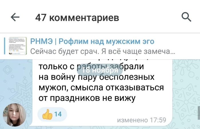 В российском обществе довольно высоки уровень неприязни к мужчинам, со стороны женщин, объясняют социологи НИУ ВШЭ Елены Пятковой и Ольги Савинской, авторы исследования «Нормативные представления о мизандрии у женщин двух поколений //Мониторинг общественного мнения: экономические и социальные перемены. 2020. № 2.»