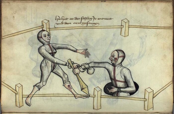 В юридических кодексах и фехтовальных книгах XV века описан формат Ehelicher Zweikampf — супружеский поединок.