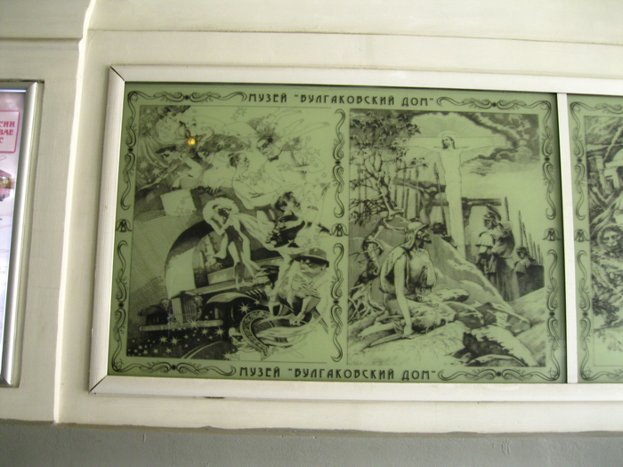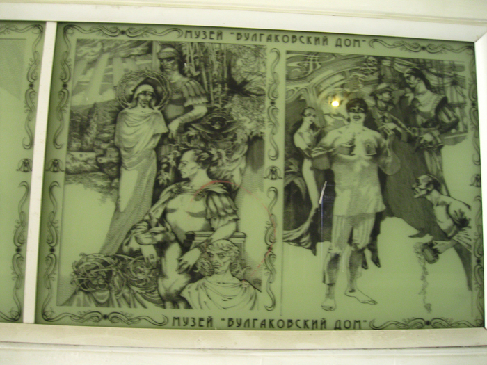 Наверное экскурсоводу, как и актеру, нужно сконцентрироваться на одном из зрителей чтобы работать с залом - Маргарита почему-то выбрала меня. Ну так-то неудивительно, я носил очки, длинные волосы и делал умное лицо. Она постоянно смотрела на меня и говорила что-то в стиле: "Ну вы знаете", "Ну вы помните", "Помните в тринадцатой главе Белой Гвардии был такой момент"? Я кивал с умным видом, а сам краснел, багровел и стеснялся. С творчеством Булгакова я тогда не был знаком абсолютно. Пробовал читать "Мастер и Маргарита" - бросил, скукота: пилаты какие-то, римляне, Иисус. Пьесы тем более не читал. "Собачье сердце" видел по телевизору. Но признаваться было стыдно и я молился только чтобы она ничего такого эдакого не спросила. Но она не спрашивала, она водила нас по дому и увлеченно рассказывала все новые и новые факты и интересные подробности. Черт побери, даже такому неучу как я было необычайно интересно. Тем более я люблю мистику, а в этом доме мистики было полно. Как говорится атмосферу “можно было ложкой есть”.