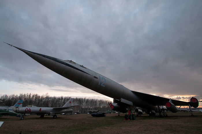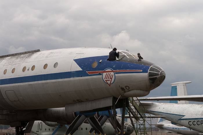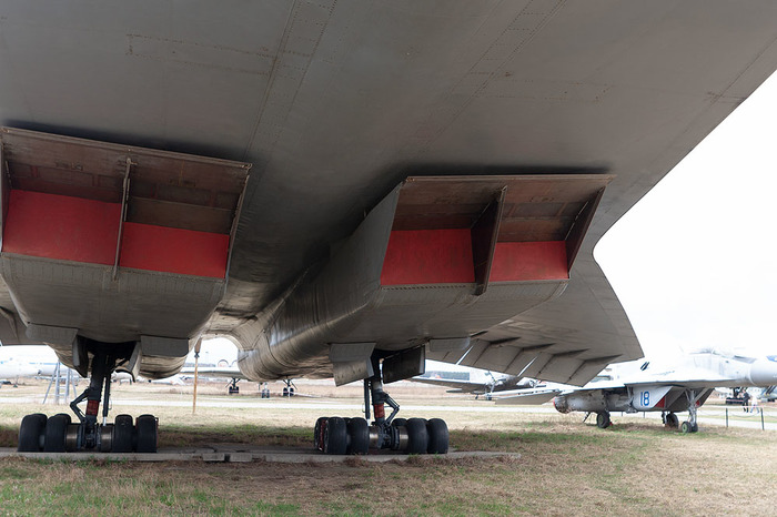 А так выглядит Ту-144 оттуда, куда обычных посетителей не пускают. Он стоит на бетоне, поэтому не утонул.
