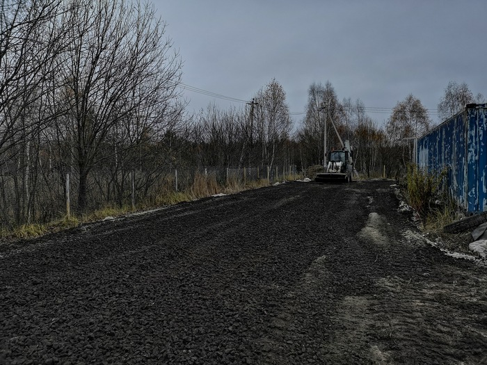 Тем временем вокруг вагона мы начали проводить работы по созданию балластного слоя (как на жд). Начали с разравнивания территории вокруг вагона.