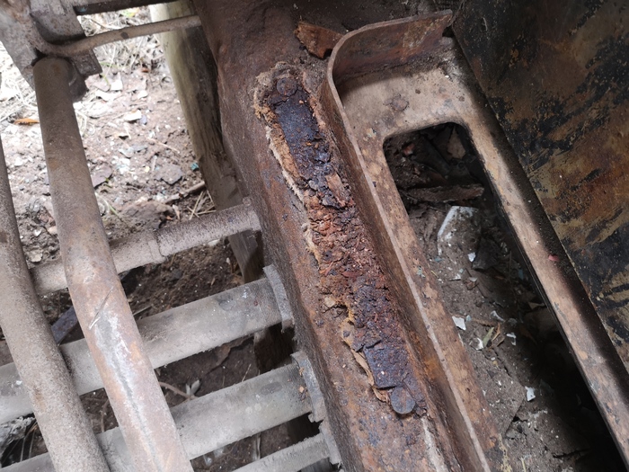 Начали демонтаж полов. Конечно полы сгнили. Рама кузова живая.