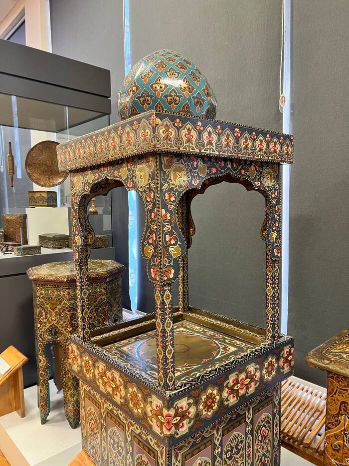 Теперь этот дом-узей содержит богатейшую коллекцию (более 7000 экспонатов) образцов декоративно-прикладного искусства Узбекистана – вышивка, керамика, чеканка, золотое шитьё, стекло, фарфор, лаковая миниатюра, резьба и роспись по дереву, музыкальные инструменты, ювелирные изделия, ткани, ковры. Но и само здание является своего рода музейным артефактом. Его интерьеры отделаны в лучших традициях среднеазиатского искусства. Очень интересна история строительства и функционирования этого здания. Судьба этого дома связана с именами ряда известных людей, биографии которых могли бы лечь в основу отдельных повествований.