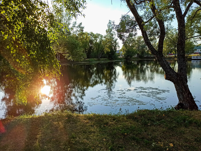 Уходя оттуда в этот вечер мы обнаружили, что людей на территории уже мало, но всё равно есть. В основном все находились именно в этой части музея-заповедника. Кто-то расположился с семьёй и детьми около колодца, где-то просто гуляли люди, откуда-то шёл мужик с собакой (явно местный житель), одна девушка даже писала картину (пейзаж по всей видимости).