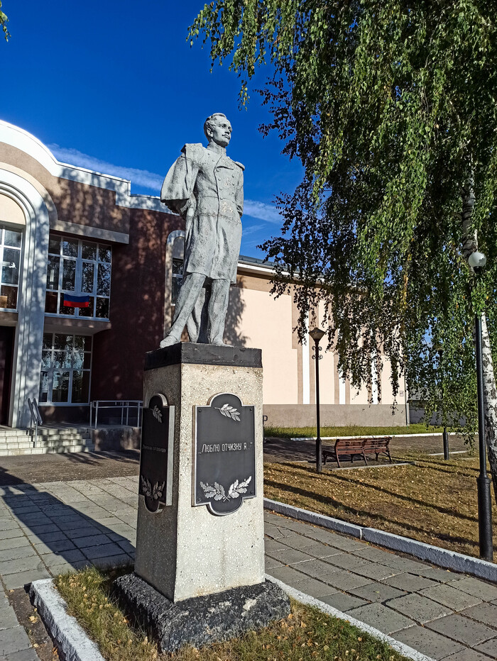 После по Центральной улице мы отправились в магазин. Напротив Дома культуры увидели ещё один прекрасный памятник М.Ю. Лермонтову.