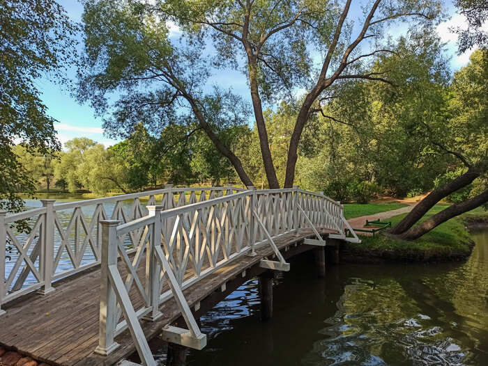 Далее отправились к мостику через большой пруд. Справа находится "Тайная беседка" (9), но поскольку она тайная, фотографии её не будет (шутка, всё из-за лимита фотографий).