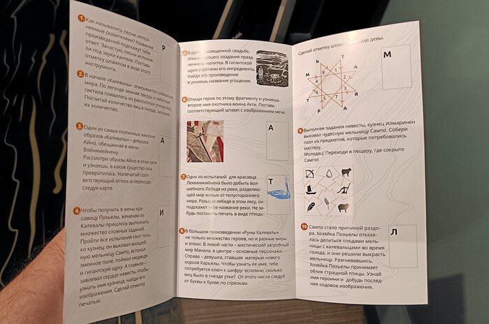 Позволю себе позанудствовать и покритиковать авторов экспозиции за то, что они избегают мою любимую букву Ё. При написании «Похьела», как в музее, люди совершенно неверно читают название этой страны. Верно будет: «Похьёла», с ударением на первый слог. Название происходит от слова «Pohja» («север»). Северная страна Похьёла, она же Пиментола, Сариола, Сарая, во многом враждебна Калевале, оттуда идут холод и болезни, но при этом они сосуществуют в диалектическом единстве. Калевальцы находят в Похьёле жён или какие-нибудь культурные ништяки, вроде бы где-то там находится корень мирового древа, и так далее.