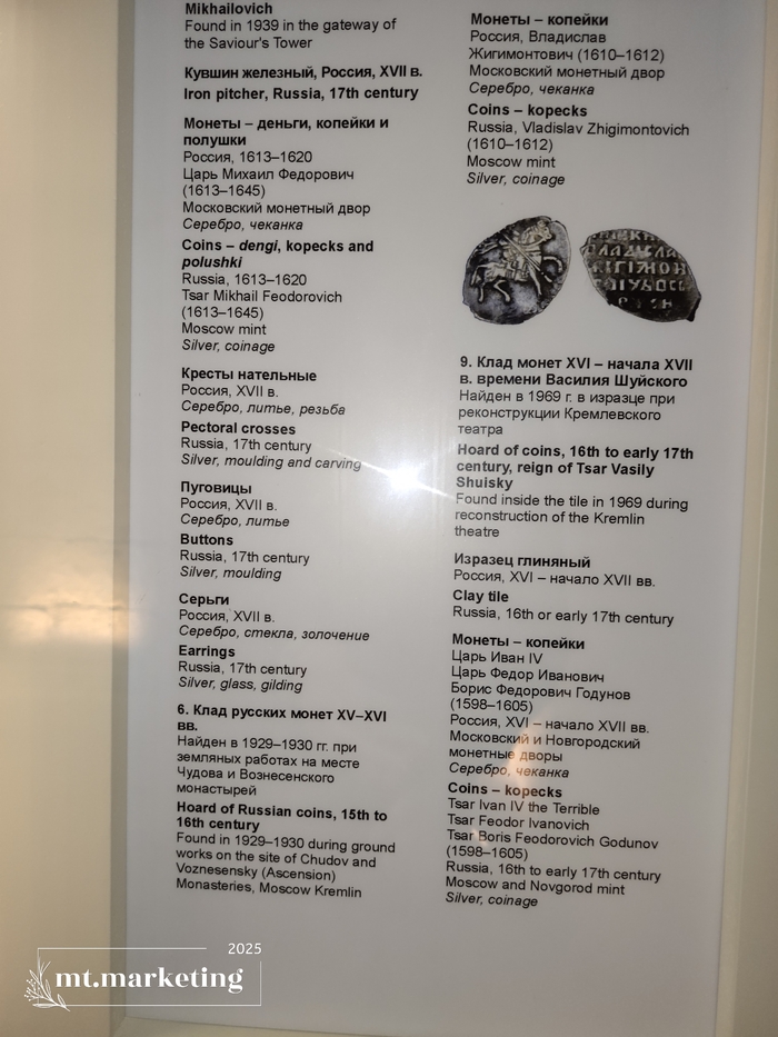 Полностью обойдя территорию Кремля, я проследовал ко входу на нужную мне выставку и стал изучать экспонаты.