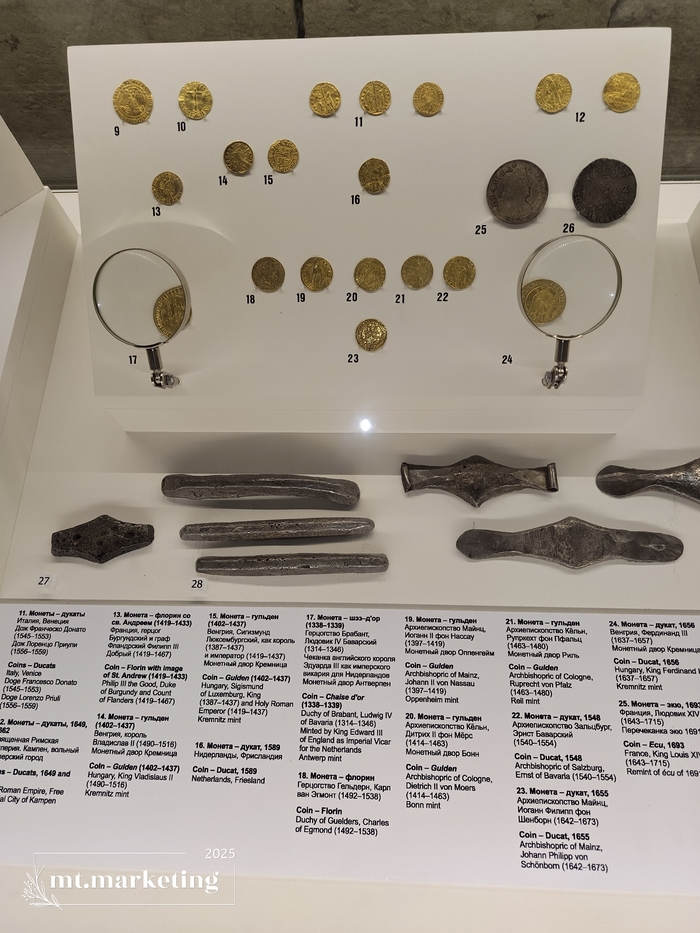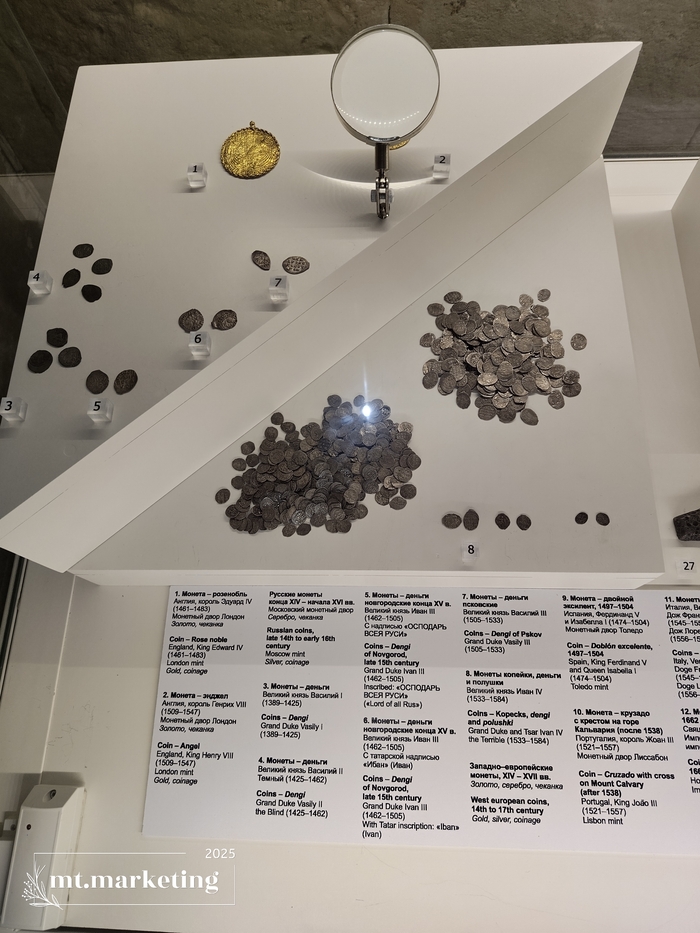 В витринах были представлены различные украшения, напрестольные кресты, украшенные драгоценными камнями, Евангелия в золотых окладах и многое другое. Из информационных табличек я узнал, что Ярославль в 17-м веке был одним из важнейших центров серебряного дела, славящимся своими мастерами.