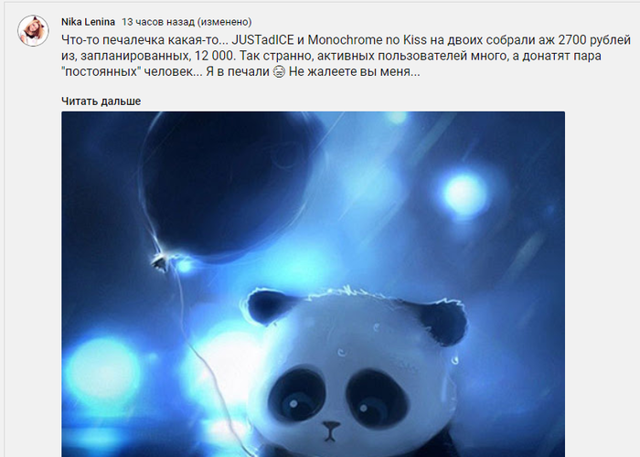 Здесь же- другая картина. Подписчиков открыто упрекают, описывая какой это ужасный труд и вообще, автор идет на жертвы, а люди этого не ценят. Такое странное отношение к аудитории- не гуд