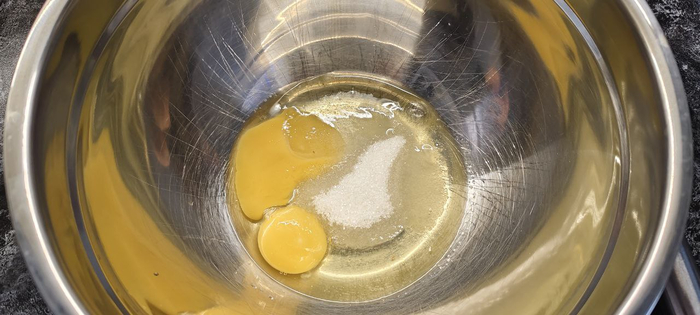Смешиваю соль, сахар и яйца венчиком до однородной массы