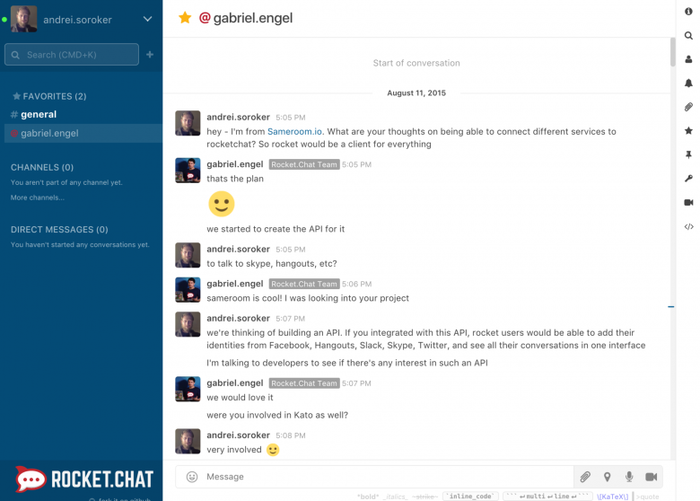 Кому интересно, рокет чат есть на бесплатном демо-серваке с полным доступом вот тут.