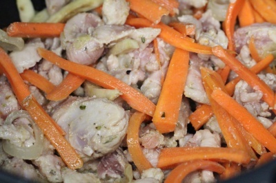 Добавить лук и морковь, жарить, около 15 мин, не