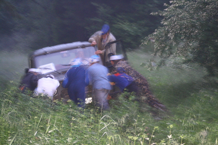 Грузим его избитый велосипед, делать всё равно уже нечего, поэтому едем в магазин за алкоголем на вечер, первый заряд ливня нас хоть и впечатлил, но в машине он нам мало что мог сделать. Возвращаемся в базу, отмечаем финиш. Идём мыться.
