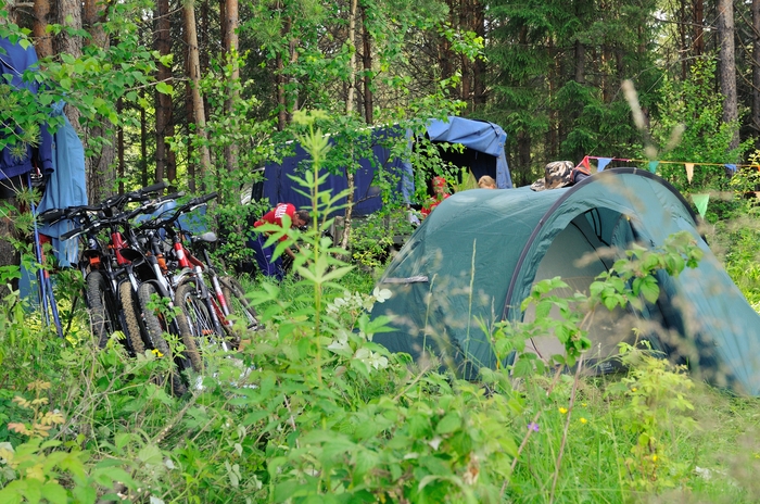 Типичное соревновательное утро, завтрак, сборы, шутки-прибаутки, вазелин, крем от солнца, проверка велосипедов, сборка рюкзаков и заброски, обсуждение планов на гонку.