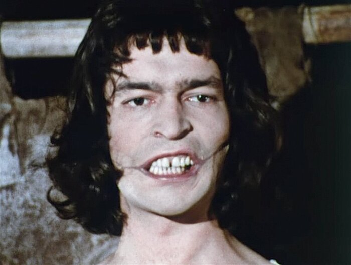 Второй ужас - французский мини-сериал "Человек, который смеется" (1971). В этом пугала не сама улыбка Гуинплена, а безобразие человеческой души и тех неожиданных поворотов, которые иногда приносит жизнь. Воспитательная миссия кинофильма была выполнена, похоже.